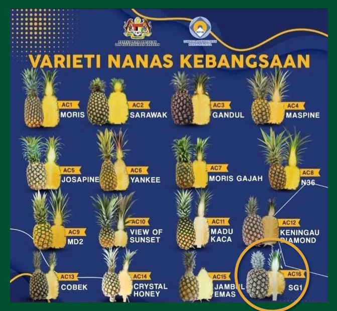 Malaysia is home to several pineapple varieties, each suited to specific market demands and agroclimatic conditions. Commonly cultivated varieties include MD2, Josapine, Morris, N36, and Sarawak Gold (SG1). Among these, SG1—officially registered under the name Sarawak Gold—is a relatively new and promising variety that has garnered increasing attention for its unique qualities and suitability for cultivation in East Malaysia.